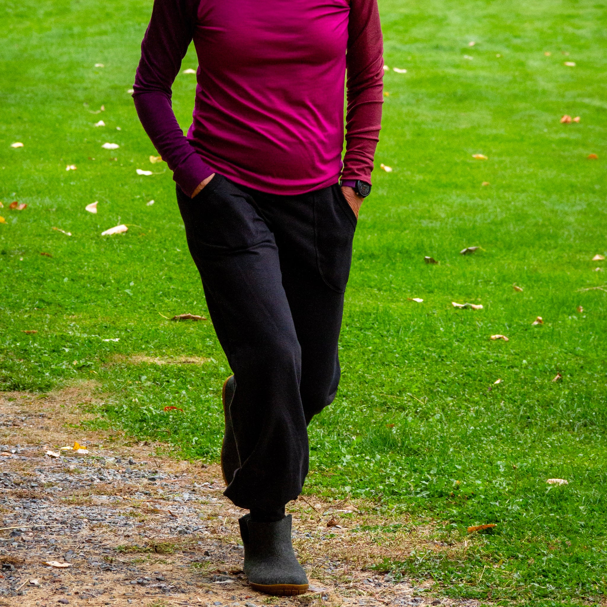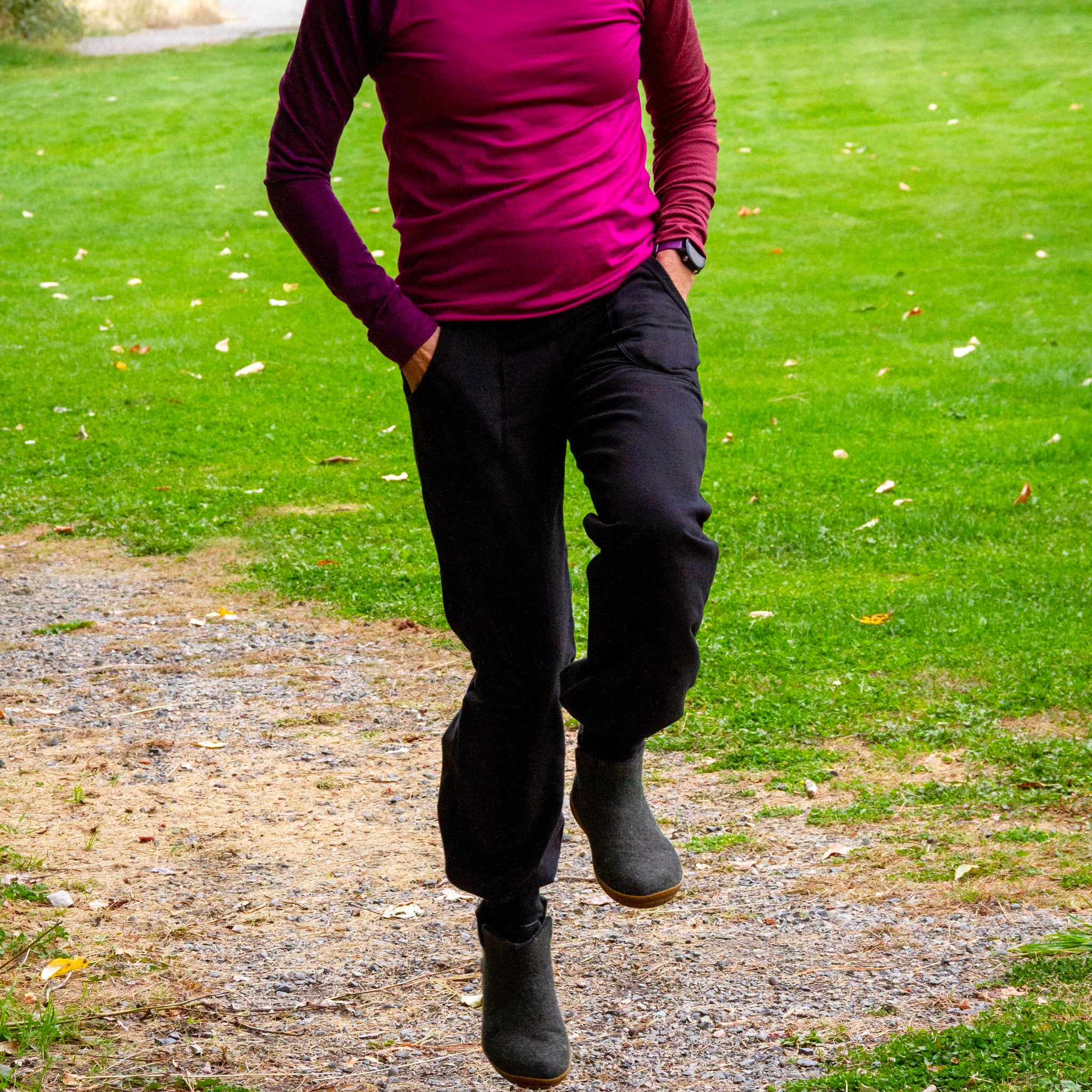 Same pattern as my Nomad Pant, just made with the Hemp Stretch Fleece instead. If you are familiar with my typical hemp fleece, this now has lycra in it. In my opinion, it is WAY nicer. The non-lycra would stretch out a lot, the new fabric holds its form and is extra comfortable. It is also lighter weight, takes away the bulk and makes for better pants. Try a pair for yourself - order the same size as you would in my other yoga pants.