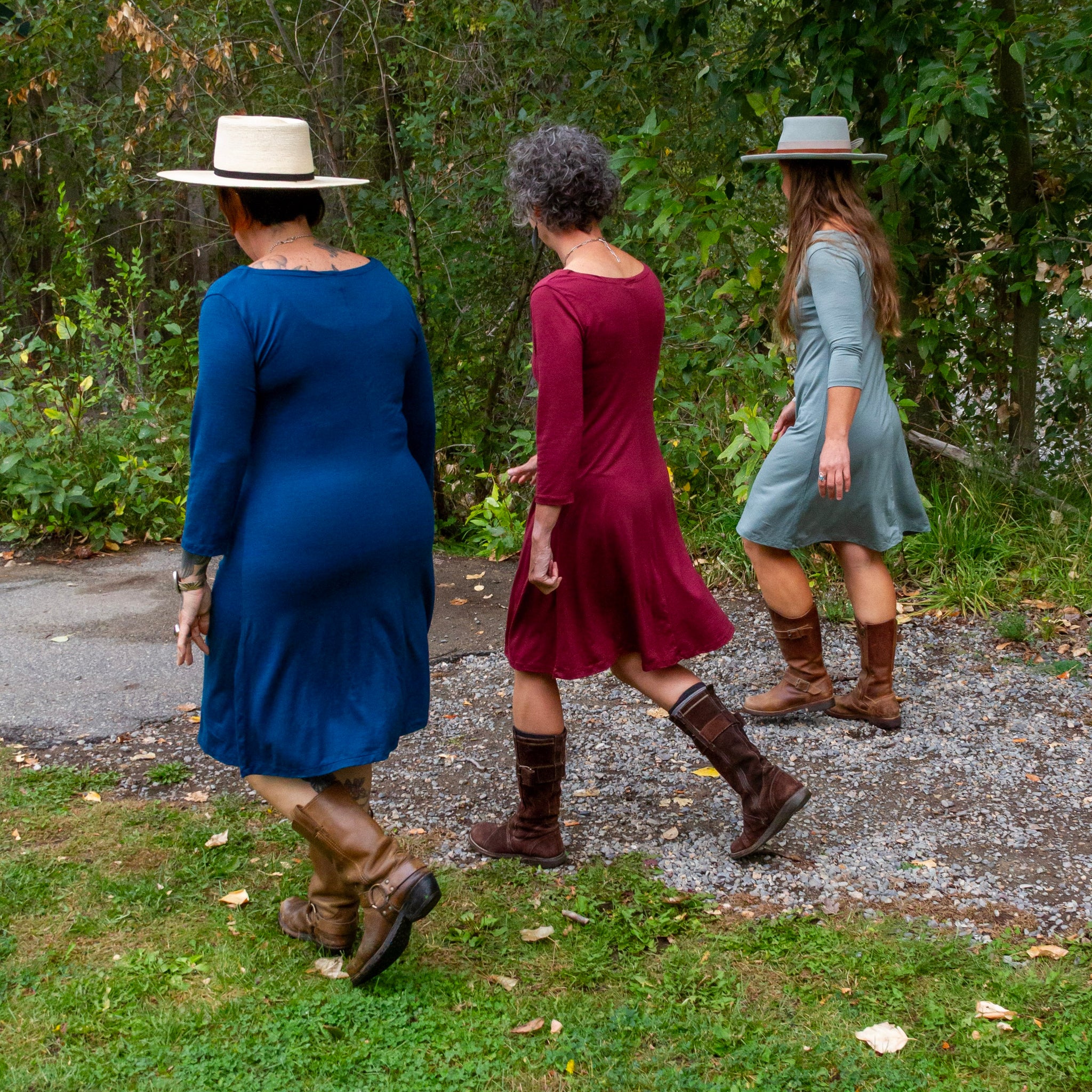 Colors ~ I am wearing size Small in Sage, Janet - Small in Sangria, Sarah Jo - Large in Moroccan Blue.