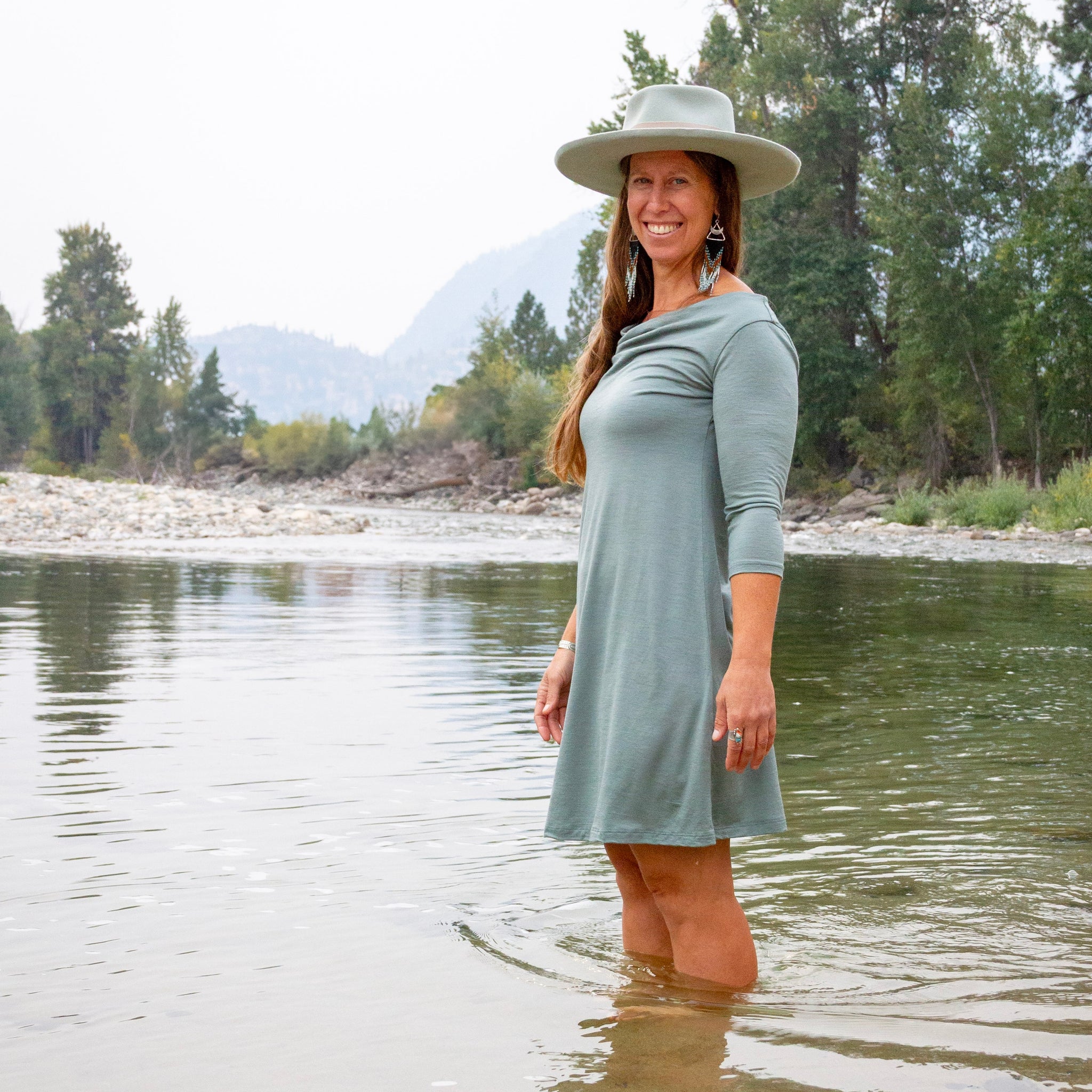 Experience effortless elegance with the Merino Wool Lupine Dress. Hand-Crafted in Mazama from breathable merino wool, this knee-length dress features a graceful cowl neck and flattering 3/4 sleeves, perfect for fall. Its rich colors and fluid drape create a sophisticated silhouette that moves beautifully with you, combining comfort and refined style in one exquisite piece.